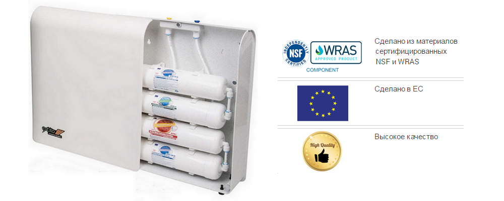 Картридж AICRO-L4 — содержит уголь из скорлупы кокосового ореха, который удаляет свободный хлор до 99%, примеси и органические загрязнения. Специально примененный в системе фильтрационный элемент удаляет из воды тяжелые металлы (например свинец, никель, хром, и много других), а также понижает концентрацию железа в воде. Улучшает органолептические свойства воды.