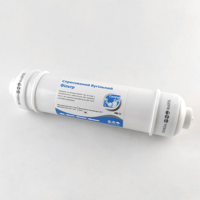 Фильтр для пурифайера Raifil 11" PRE изготовлен на основе активированного угля из скорлупы кокосовых орехов. Картридж Raifil PRE удаляет хлор и его соединения, пестициды, гербициды, газы, различные органические вещества и некоторые металлы (бензольные соединения). Удаляет неприятный привкус и запах воды.