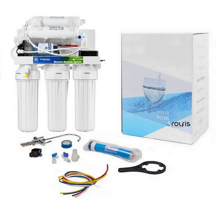 Фильтр оснащен минерализатором, который обогатит вашу воду: Ca – 34mgl, Mg – 12mgl, Na – 22mgl, K – 8,5mgl, анионами: CO – 10mgl, SO – 0,3mgl, Cl – 0,8mgl, F – 0 . То есть вода из просто питьевой превращается в минеральную воду. Если давление в водопроводе меньше 3 атм необходимо установить повышающий насос, а если давление превышает 6 атм – установит регулятор давления (редуктор).