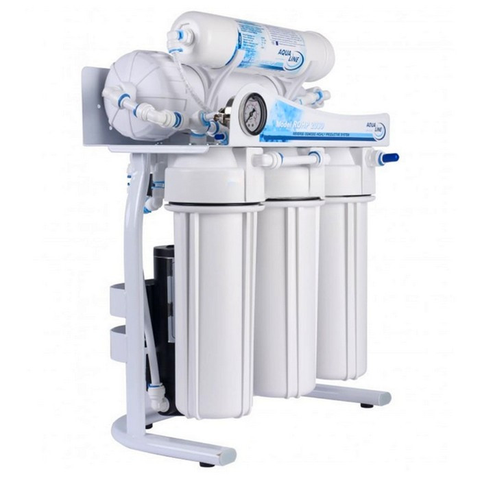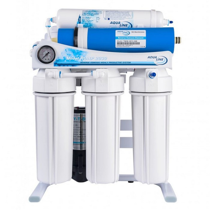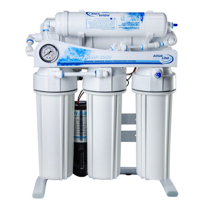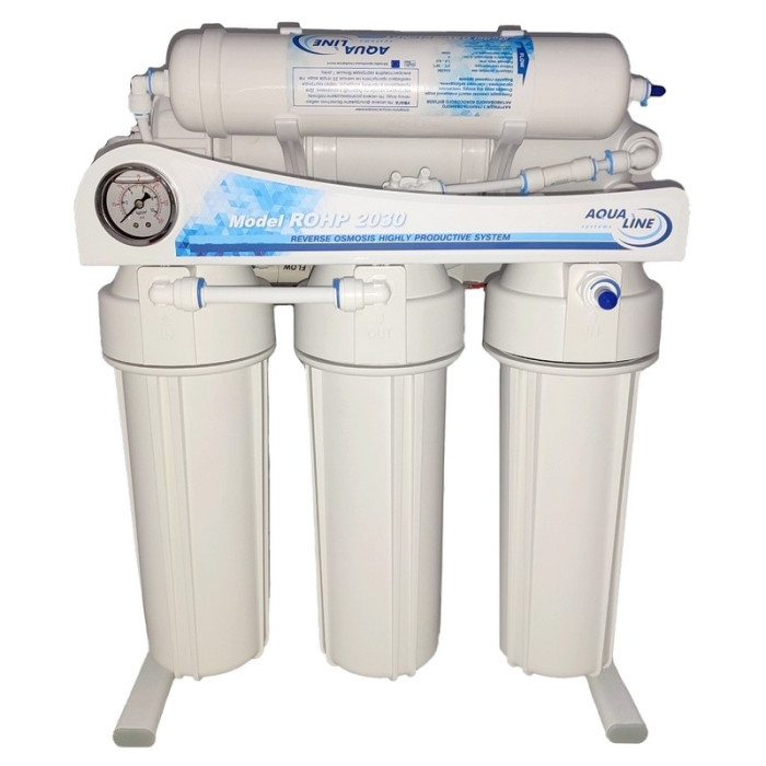 Aqualine ROHD 2030-1 P800 (RO-500G) – это не только очистка воды, но и гарантия безопасности и надежности. Её высокая производительность (до 80 л/час или 1900 л/сутки) достигается благодаря использованию двух мембран AQUALINE 500 GPD и насоса повышения давления воды производительностью в 0,48 GPM, которая обеспечивает стабильную работу мембран. В системе используются три колбы размером Slim10, что делает замену картриджей более простым заданием, так как, это самый распространенный размер картриджей на рынке.