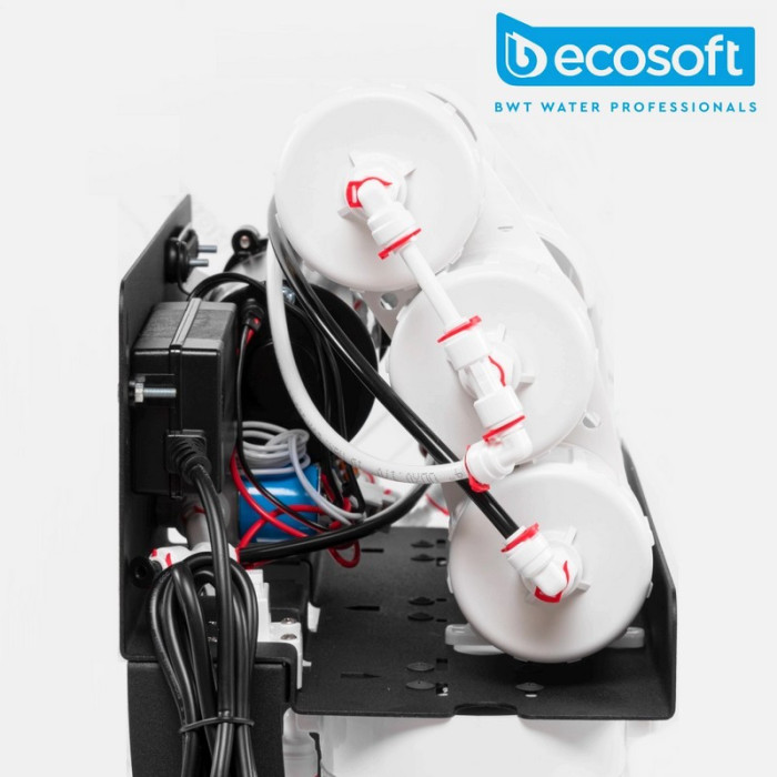 Главным преимуществ коммерческого обратного осмоса Ecosoft Robust Standard является его экономичность, так как в процессе очистки 1 литра чистой воды в канализацию отправляется равнозначное количество грязной, в то время, как обычные домашние системы сбрасывают до 10 л загрязненной жидкости, чтобы получить 1 литр очищенной. Система работает без накопительного бака. В конструкции предусмотрены 3 обратноосмотические мембраны 1812 100 GPD для минимального сброса концентрированных отходов в канализацию. Это позволяет существенно увеличить производительность. Кроме того, в системе установлен картридж из прессованного активированного угля для улучшения запаха и вкусовых качеств воды во время финишной очистки.