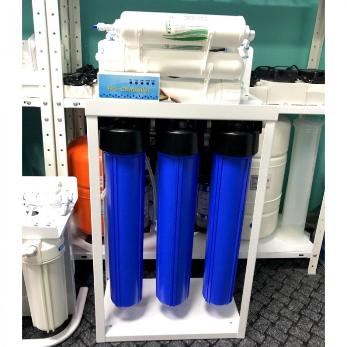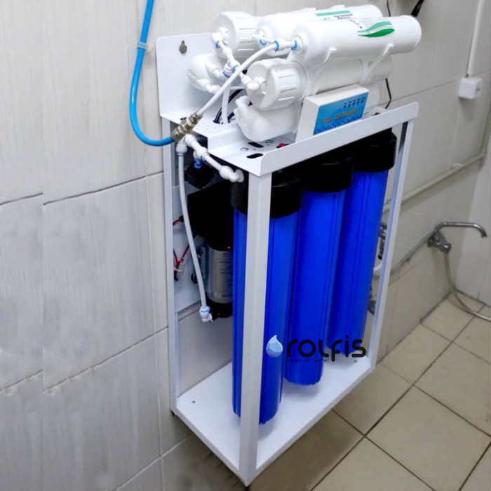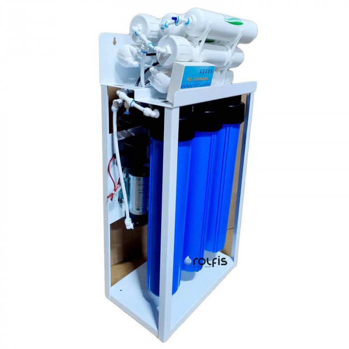 Фильтр обратного осмоса Kaplya KP-RO-L400-NN - высокопроизводительная система очистки воды обратным осмосом для коммерческого использования с объемом чистой воды в количестве до 1500 л в сутки. Данная система очистки оснащена обратноосмотическими мембранами 100 GPD в количестве 4 шт., что позволяет получать достаточно высокую производительность. Максимальная производительность 60 л/час.