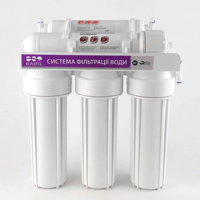 Глубокая очистка обратным осмосом состоит из 5 уровней фильтрации воды. Добавление в конструкцию Raifil Grando 5 Standart усиленных колб и двух резинок позволило противостоять гидроударам, снижая вероятность поломки системы, и, следовательно, продлить срок службы.