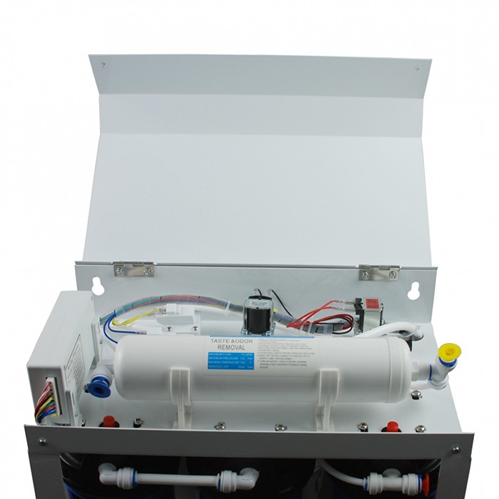 Самое главное преимущество данной системы от других - это наличие контроллера. Он управляет циклами промывки обратно осмотической мембраны, контролируя состояние качества исходящей воды на содержание солей, электро проводимость, а так же температуру входящей воды. Кроме этого, контроллер следит за состоянием всей очистной систем и своевременно оповещает о поломках, протечках и состоянием фильтрующих элементов.