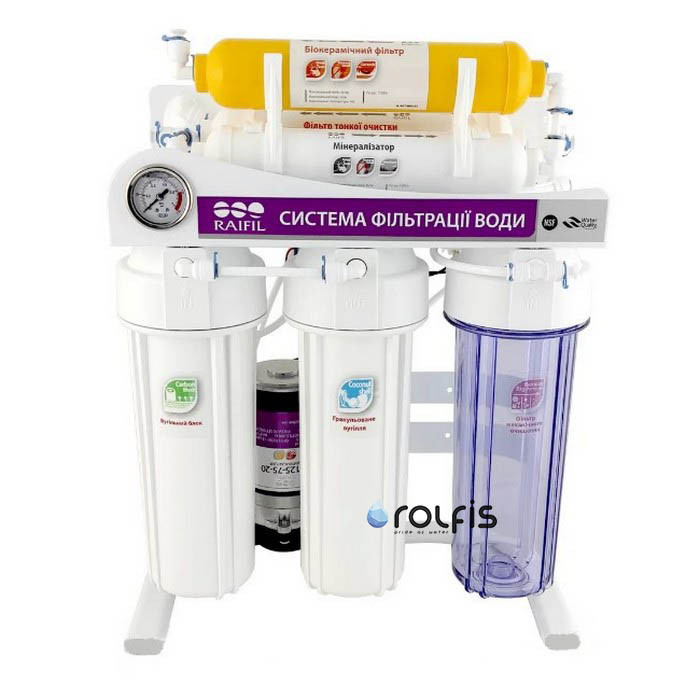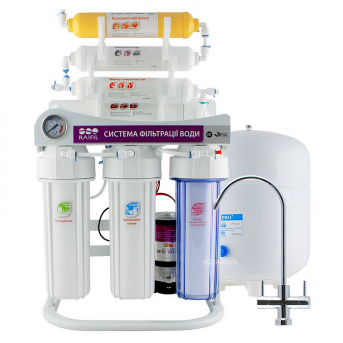 Процесс фильтрации осмоса Raifil на станине состоит из 7 последовательных шагов очистки воды: