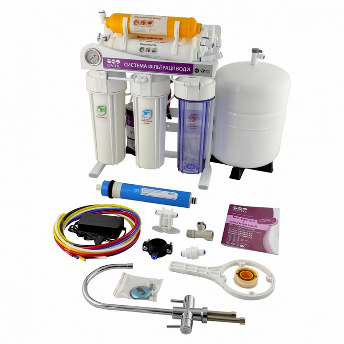 Фильтр обратного осмоса Raifil RO905-750BP-EZ-S на станине - это высококачественная система очистки воды на металлической станине для получения питьевой воды. Фильтр изготовлен из пищевого пластика высокого качества, а качественный фильтрующий материал и американская мембрана гарантирует получение идеально чистой питьевой воды!