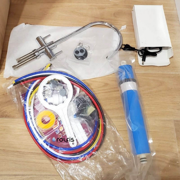 4. Главный элемент в обратном осмосе - обратноосмотическая мембрана. Через нее проходит только молекулы воды и кислорода, а все остальные примеси смываются в канализацию. В данной системе стоит мембрана Raifil 75 GPD, которая производит до 12 л воды в час.