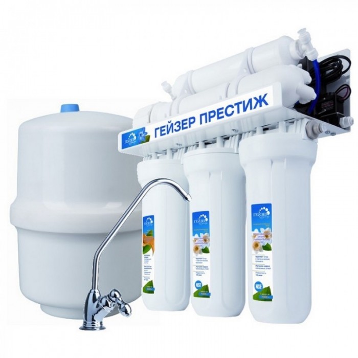 Гейзер Престиж П - пятиступенчатый фильтр для получения питьевой воды с помпой повышающей давление. Система обратного осмоса очищает воду на 99,9%.