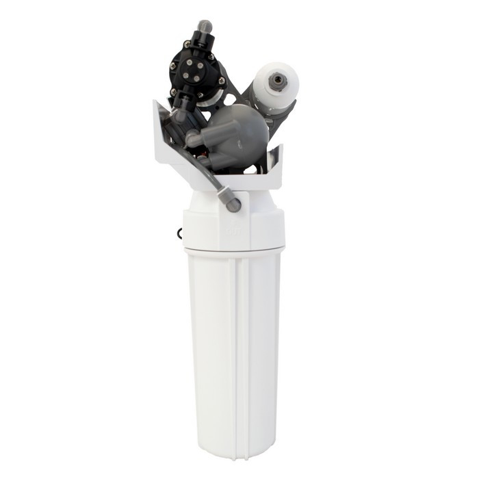 Мембрана на 75 GPD позволяет получать до 12 л/час чистой питьевой воды. А наличие пластикового накопительного бака на 12 л (рабочий объем 8 л) позволяет иметь постоянно чистую воду в запасе.