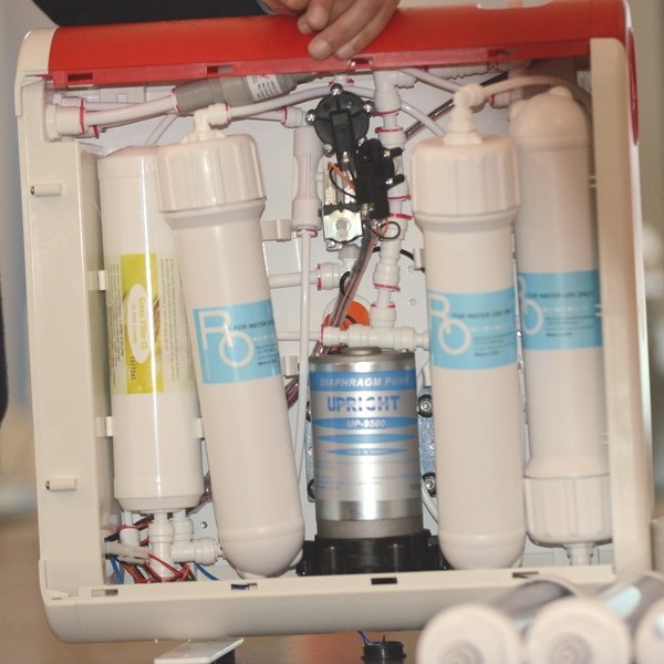 Наличие трех мембран дает возможность получать до 85 л очищенной воды в час. А узел подмеса позволяет потребителю выбирать минерализацию очищенной воды.