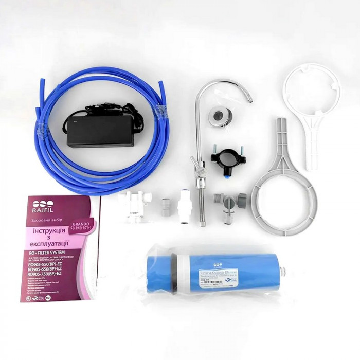 Система очистки воды Грандо 5 рассчитана для бытового применения и легко устанавливается в кухне под разнообразными мойками, не занимая много места. Выбрать Raifil Grando RO905-550-EZ-S означает получить комбинацию десятилетнего опыта работы, новейших технологий и международных сертификатов качества (NSF International, Water Quality Association). К особенностям данного фильтра относят качественные фитинги C.C.K. (на быстросъемном соединении), которые сокращают время сбора и монтажа, а также защищают от подтекания воды.