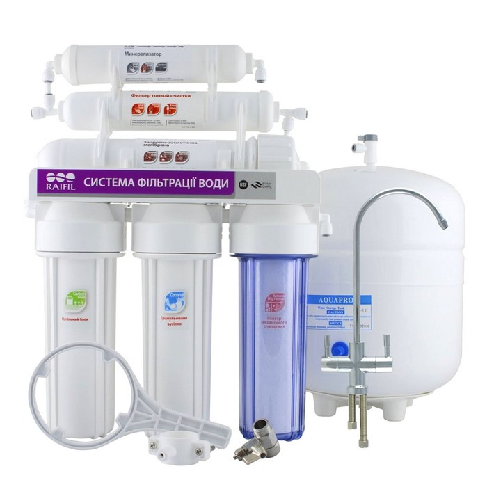 Обратный осмос Raifil Grando 6 - качественная система для очистки воды до питьевого уровня. Колбы в системе изготовлены из качественного прочного пластика, а крепятся они на металлический кронштейн. Первая колба стоит прозрачная и это дает возможность следить за состоянием картриджа и своевременно его заменить.