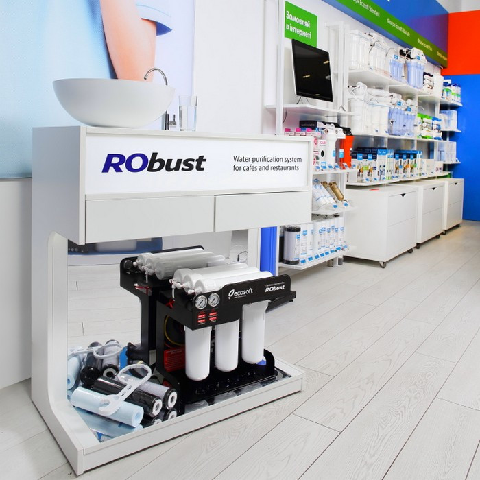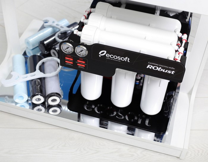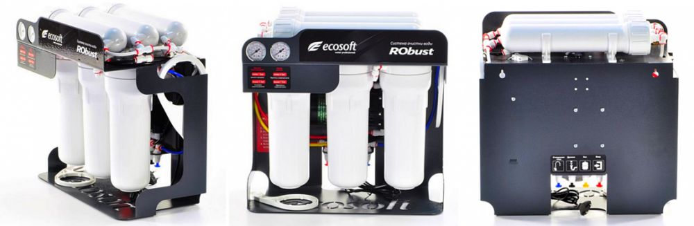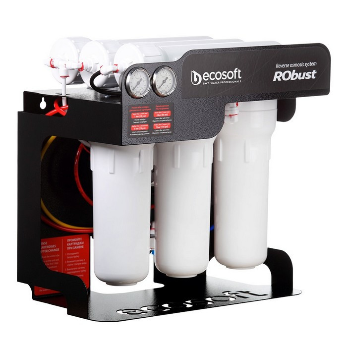 Ecosoft RObust 1000 - данная высокопроизводительная установка обратного осмоса предназначена для получения воды с пониженной минерализацией для питья и технологических целей. Осмос RObust очень производителен (до 1440 л/сутки), поэтому отлично подойдет для очистки воды в общественных заведениях (кофейни, рестораны, кафе), также в гостиницах, коттеджных домах и офисах с штатом сотрудников более 15-20 человек.