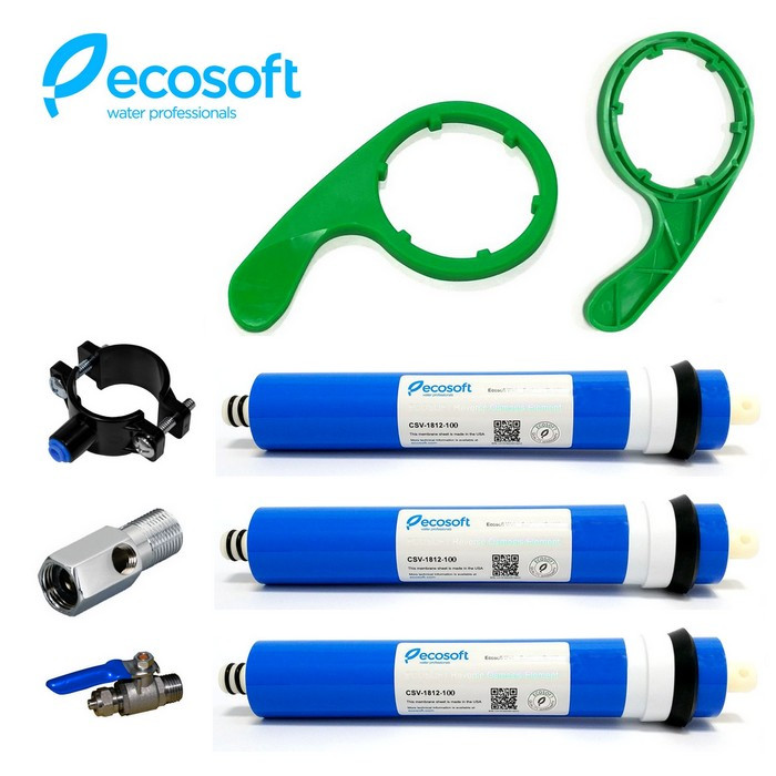 - трех мембран Filmtec TW30-1812-100, производительностью по 100 галлон (380 л/сутки);
