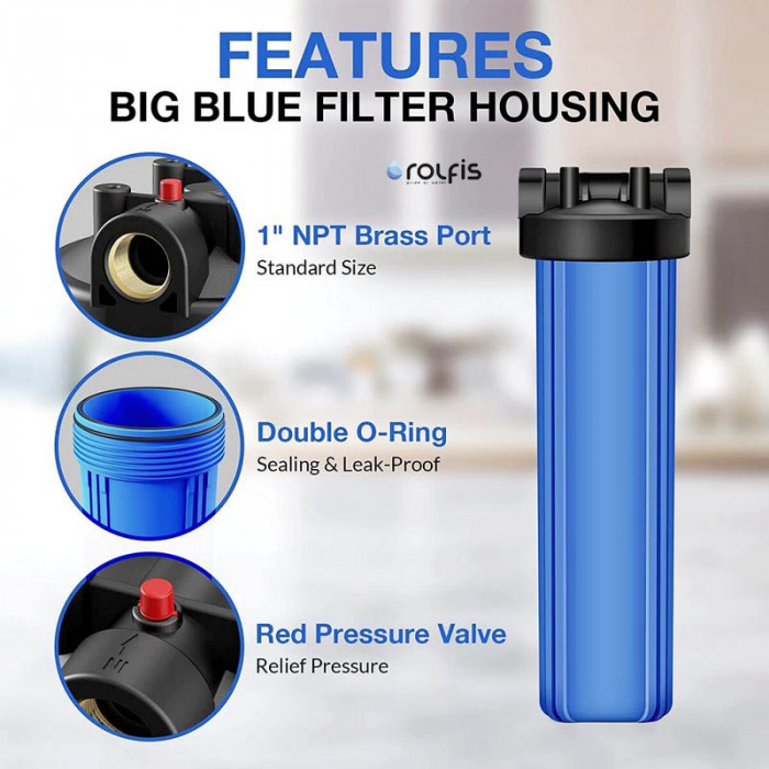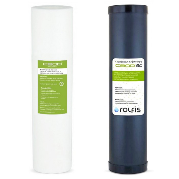 1-я Ступень: фильтр грубой очистки типа ВВ20 с картриджем из вспененного полипропилена рейтингом фильтрации 5 микрон (удаление из воды механических примесей (песка, ила, ржавчины и т. п.). Защищает и продлевает срок эксплуатации основного оборудования для водоподготовки. Фильтрующий элемент: полипропиленовый картридж типоразмера 20″).