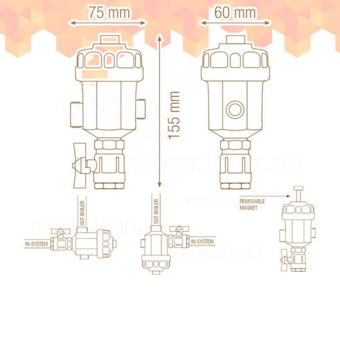 • Магнитный фильтр-грязеуловитель можно устанавливать с различной ориентацией