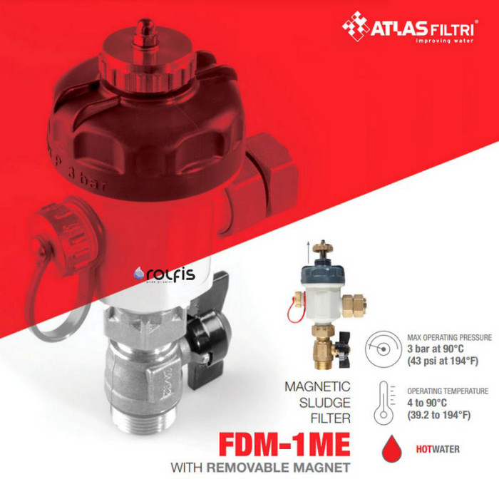 Магнитный фильтр Atlas Filtri FDM-1P RE6170181 устанавливается на обратной магистрали котла, чтобы защитить систему от всех имеющихся в системе загрязнений; благодаря компактным размерам этот фильтр без труда устанавливается под котлом в домашних отопительных системах. Компактный и универсальный FDM-1N легко приспосабливается к направлению труб, горизонтальные или вертикальные.