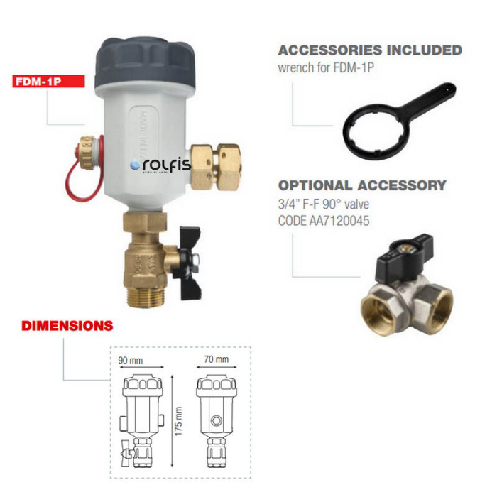 Магнитный фильтр Atlas Filtri FDM-1P устанавливается на обратной магистрали котла, чтобы защитить систему от всех имеющихся в системе загрязнений; благодаря компактным размерам этот фильтр без труда устанавливается под котлом в домашних отопительных системах. Компактный и универсальный FDM-1N легко приспосабливается к направлению труб, горизонтальные или вертикальные.