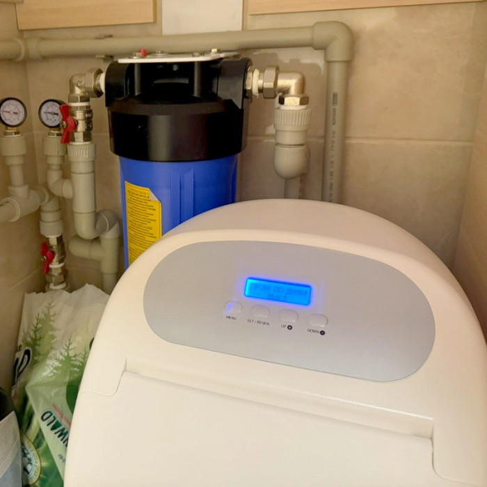 Эксплуатация полностью автоматическая. Все, что Вам нужно делать, это периодически засыпать таблетированную соль в умягчитель. В фильтре установлен автоматический клапан управления Canature BNT-850F, который запускает регенерация и по времени и по объему.
