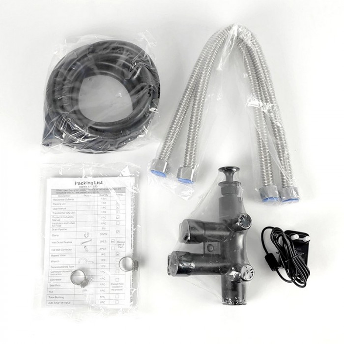 В умягчителе стоит автоматический клапан управления Runxin F69 благодаря которому происходит управление процессами фильтрации и регенерации системы по объему очищенной воды, что позволяет значительно экономить на таблетированной соли и существенно продлевает срок службы фильтрующего материала.
