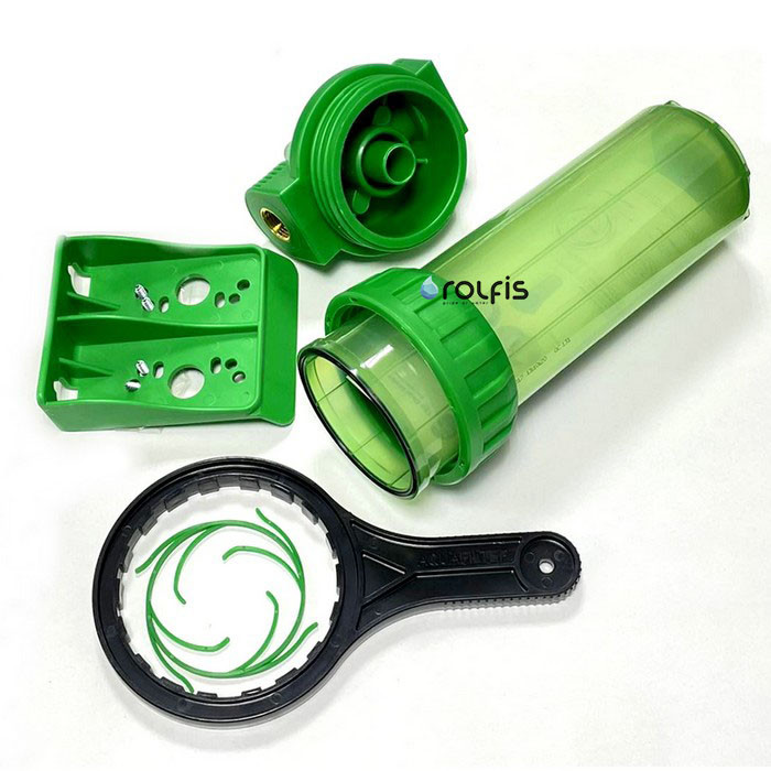 Зеленый корпус Aquafilter FHPR-3_R-AB имеет бактериостатические свойства, что предотвращает развитие бактерий внутри корпуса. Также корпус устойчивый в УФ излучению.