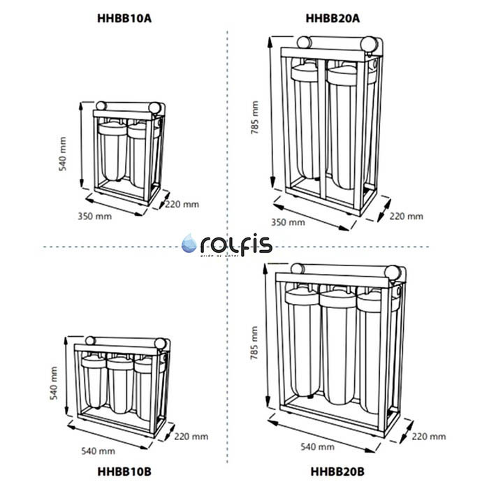 Высокопроизводительная установка Aquafilter HHBB20A – система очистки воды, которая состоит из двух 20" колб из синего пластика, которые смонтированны на металлический каркас. Непрозрачные корпуса 20 дюймовых колб Big Blue предотвращают фотосинтез в картриджах. Корпуса также оснащены воздушными клапанами для стравления воздуха при замене картриджей.