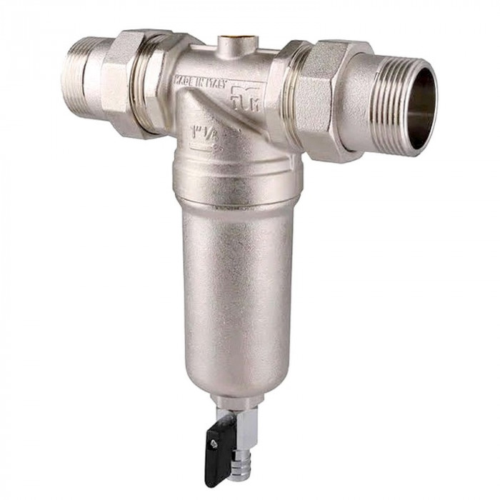 Фильтр самопромывной Tiemme Ø1 1/4″ 3130SM (3130041) ГВ 95°C/100 μ/25 bar – это высококачественный фильтр итальянского производства, который предназначен для механической фильтрации горячей воды (max. 95°C) от мелких и средних нерастворимых примесей. Такой фильтр разработан для эффективной защиты от засорения сантехники, различных бытовых приборов (бойлер, стиральная и посудомоечная машинка, котел и др.) от взвешенных механических примесей и связанных с ними поломок.