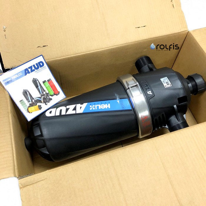В дисковом фильтре Азуд применяется технология Helix System (HS) — это запатентованный метод спирального распределения обрабатываемой воды по поверхности фильтрующего элемента, что значительно увеличивает фильтроцикл системы и минимизирует количество промывок фильтра.