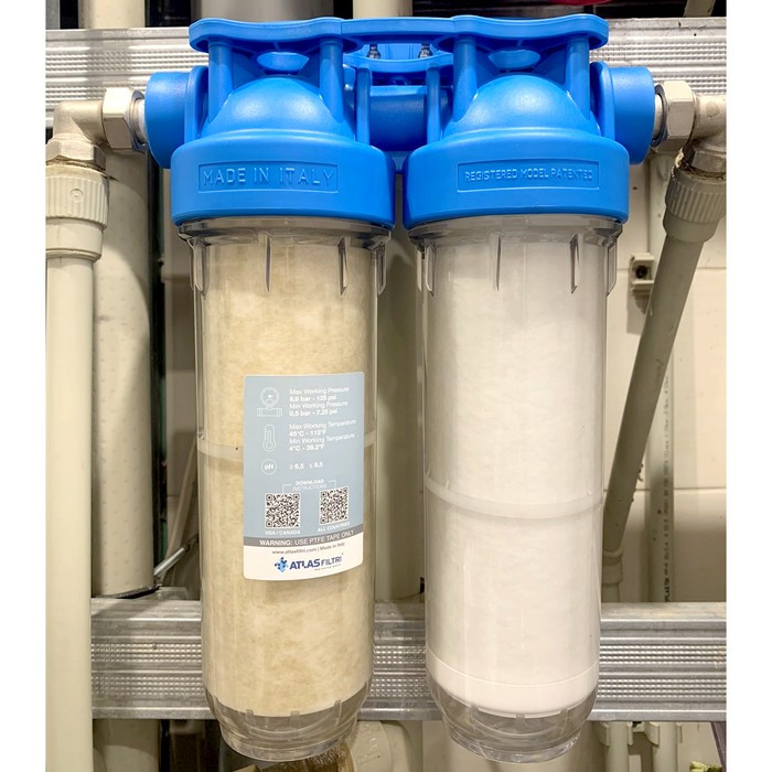 В колбах фильтра ATLAS 10 DP-DUO можно использовать стандартные 10 дюймовые угольные, умягчающий или обезжелезивающие картриджи, которые будут очищать воду от таких насущных загрязнений, как жесткость, железо, хлор и другие органические соединения.