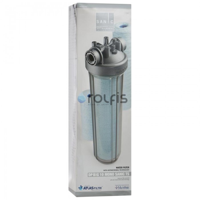 Atlas Filtri DP Big Sanic 10" kit ZS1700712 - магистральный фильтр, предназначен для очистки холодной воды хозяйственно-бытового назначения. Данный магистральный фильтр серии SANIC изготовлен с использованием бактериостатической технологии Microban, которую запатентовала компания Atlas Filtri.