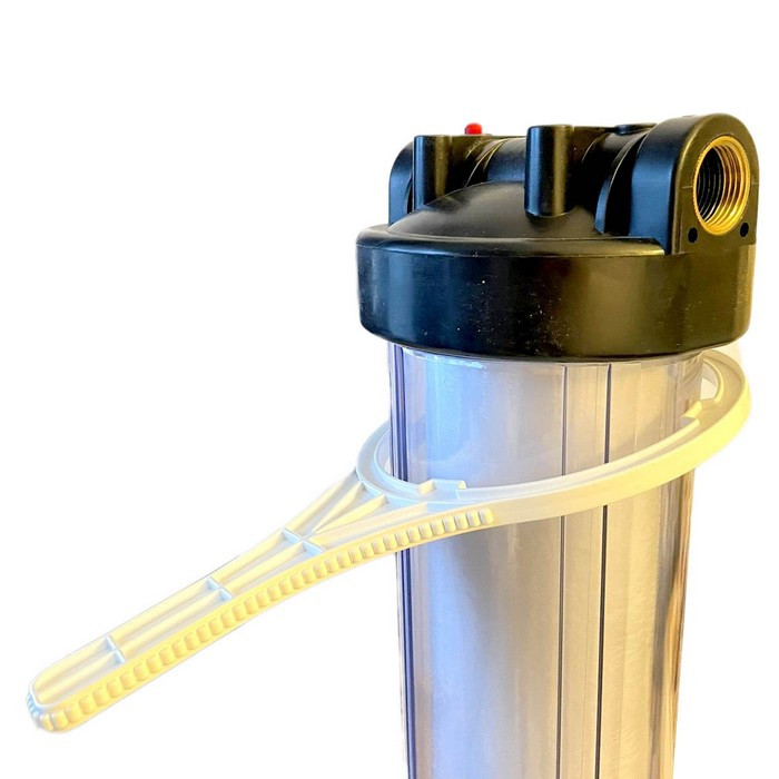 В комплект входит: корпус, полипропиленовый картридж, кронштейн для крепления и ключ.
