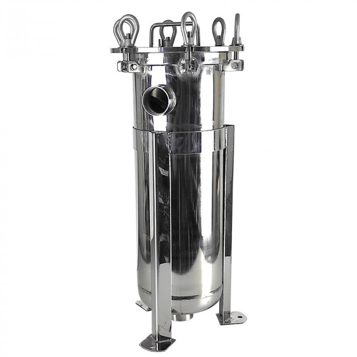 Мешочный фильтр BFH1 применяется для очистки воды и некоторых других жидких сред. Исходная вода поступает через входной патрубок и проходит через корзину с мешком, где остаются механические частицы (песок, окалина, ил и т.п.). Очищенная вода поступает на следующий этап очистки или потребителю. Входной патрубок с фланцем расположен в верхней части горизонтально относительно корпуса. Выходной патрубок с фланцем установлен в нижней части корпуса фильтра. Степень загрязнения фильтра можно контролировать с помощью манометров установленных до и после мешочного фильтра BFH1. Когда мешок засорился — фильтрация воды прекращается, мешок заменяют на новый. Очистка фильтрующего элемента производится вручную. Для этого необходимо фильтр разобрать и очистить сменный фильтрующий элемент.