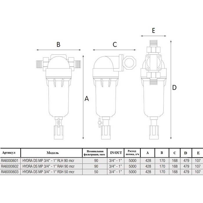 Atlas Filtri HYDRA DS MP 3/4-1" + картридж RLH 90 (RA6000601) - высокопроизводительный механический фильтр предназначен для предварительной очистки холодной воды от различных загрязнений размером не более 90 микрон (картридж из нейлоновой сетки).