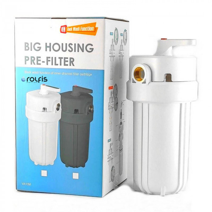 Колба Raifil VA10M BB10 Ø1" с промивкой - магистральный фильтр для очистки холодной воды с возможностью проведения обратной промывки картриджа. Фильтр VA10M имеет положение "фильтрация", положение "байпас", положение "перекрытия", положение "обратная промывка" и кнопка "сброс давления". Отсутствие потребления электроэнергии.