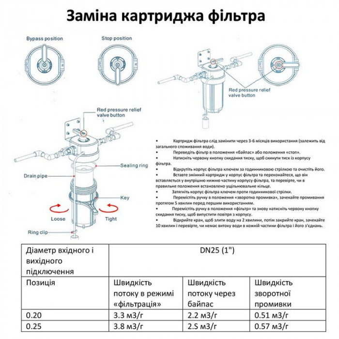 Комплектация фильтра Raifil VA10M BB10 Ø1":