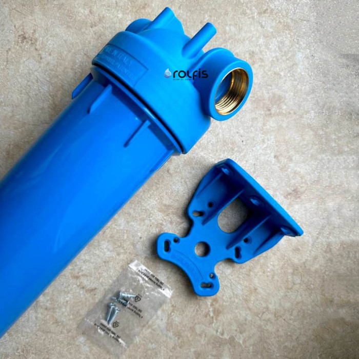 Комплектация: состоит из синего корпуса и синей крышки, пластикового кронштейна и ключа для колбы. Картридж в комплект не входит.