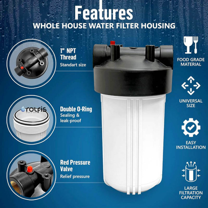 Корпус Fjord Big Blue 10" латунные резьбы + ПП картридж - магистральная колба типоразмера Big Blue 10 предназначена для фильтрации холодной воды от разного рода примесей. Колба Fjord Big Blue 10" с диаметром подключения 1 дюйм поставляется с механическим полипропиленовым картриджем на 20 мкм . Корпус фильтра усилен ребрами жесткости, которые предают ему дополнительной прочности, а клапан для стравливания избыточного давления упростит замену картриджа, исчерпавшего свой ресурс.