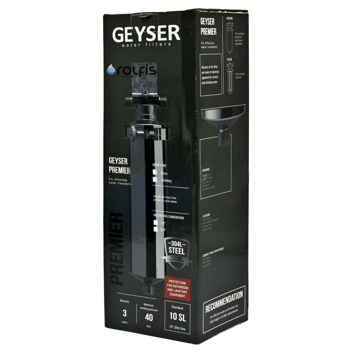 Гейзер-Премьер 10BB 1" легко подключается к магистрали и легко обслуживается. Хомутовое крепление крышки позволяет легко извлечь картридж без использования дополнительных ключей. Также для замены картриджа предусмотрено удобное отверстие снизу колбы для слива воды.