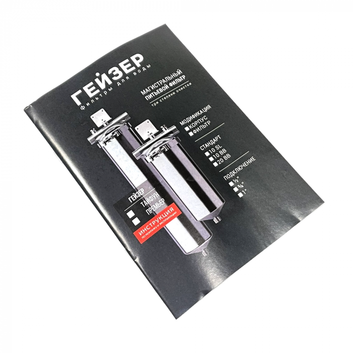 Гейзер Премьер ВВ20 – универсальный магистральный фильтр из нержавеющей стали в типоразмере Big Blue 20.