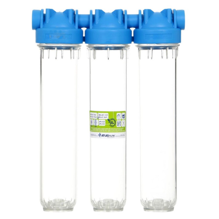 Магистральный фильтр Atlas Filtri DP TRIO TS 1" OT 20" KIT ZA1401701 - это корпус для трехстадийной фильтрации воды, которые можно использовать для очистки воды хозяйственно-бытового назначения. В данный корпус можно устанавливать, как картриджи SX со стандартными плоскими прокладками, так и со специальными картриджами BX с быстроразъемным соединением и двойным уплотнительным кольцом. Правильное расположение картриджей в колбах фильтра DP TRIO TS OT 20" обеспечивается с помощью системы центрирования Filter-Fit.