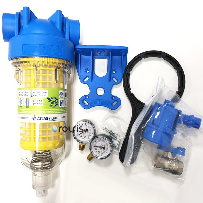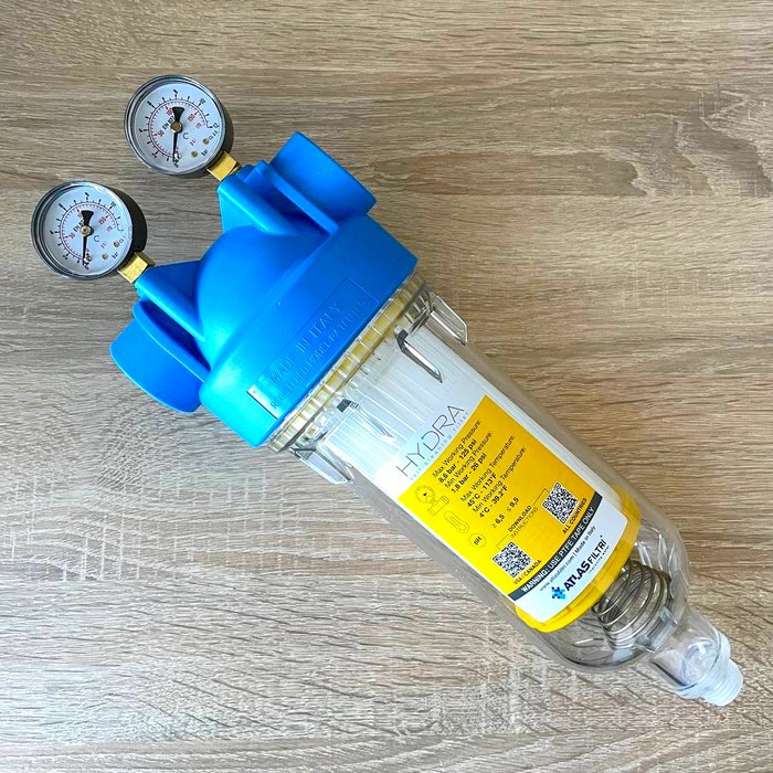 Atlas Filtri HYDRA M (манометри) Ø11/4" (латунь) + картридж RLH 90 mcr KIT RA6000113 - высокопроизводительный механический фильтр предназначен для предварительной очистки холодной воды от различных загрязнений размером не более 90 микрон (картридж из нейлоновой сетки).