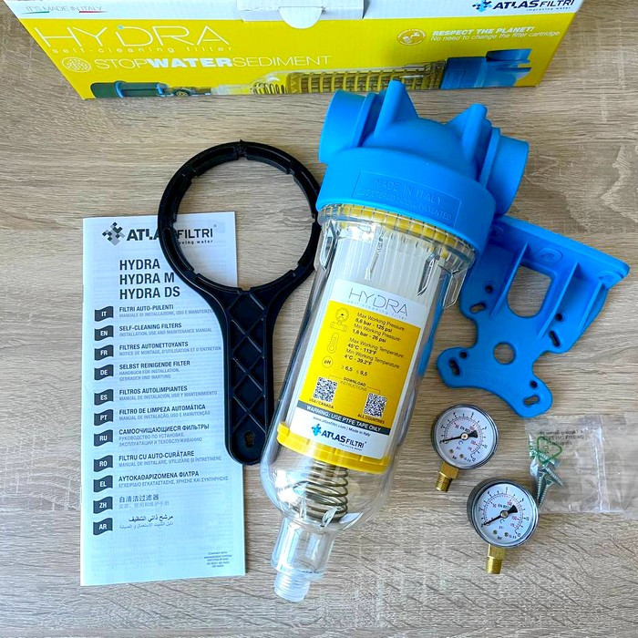 Самопромывной фильтр Атлас Гидра производится в Италии, поэтому имеют высокое качество и изготовлены из нетоксичного пластика, пригодного для очистки питьевой воды.