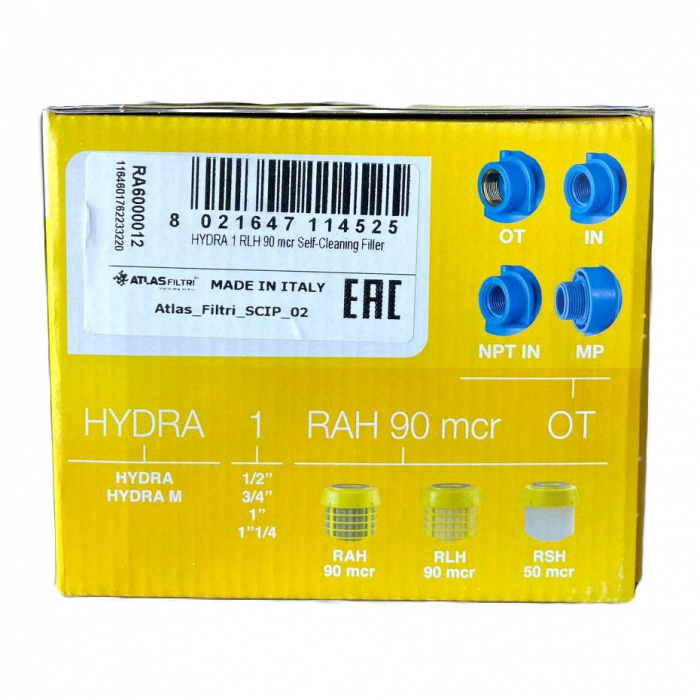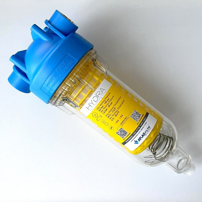 Atlas Filtri Hydra Ø1" (латунь) + картридж RLH 90 mcr KIT RA6000012 - магистральный сетчатый фильтр с подключением 1", предназначенный для предварительной очистки холодной воды от различных загрязнений размером не более 90 микрон. Фильтрующим элементом является пластмассовая сетка 90 мкм.