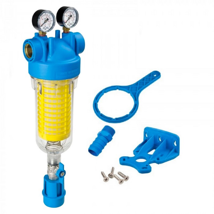 Одноступенчатый промывной фильтр Atlas Hydra M с подключением 1 дюйм имеет функцию промывания в противотоке, что обеспечивает лучшее удаление частиц, которые накопились на поверхности патрона.