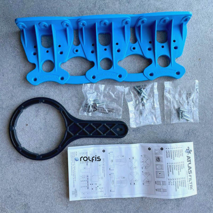Тройной магистральный фильтр ATLAS TRIO имеет подключение диаметром 1/2, 3/4 и 1 дюйм, что позволяет установить его без переходников. Колба в данной системе выдерживает давление до 8 бар, что позволит использовать её в условиях давления выше среднего (но если случаются частые перепады давления необходимо установить редуктор давления). Данная система отлично подойдет для квартиры или дома с 1 санузлом и небольшим расходом воды. Если расход воды выше среднего, рекомендуем ставить системы очистки типа Big Blue 10 или Big Blue 20.