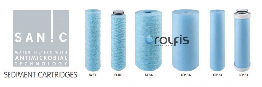 • Картриджи FA Sanic SX - антимикробные картриджи производства Atlas Filtri из витой полипропиленовой нити с добавкой бактериостатического агента на основе серебра;