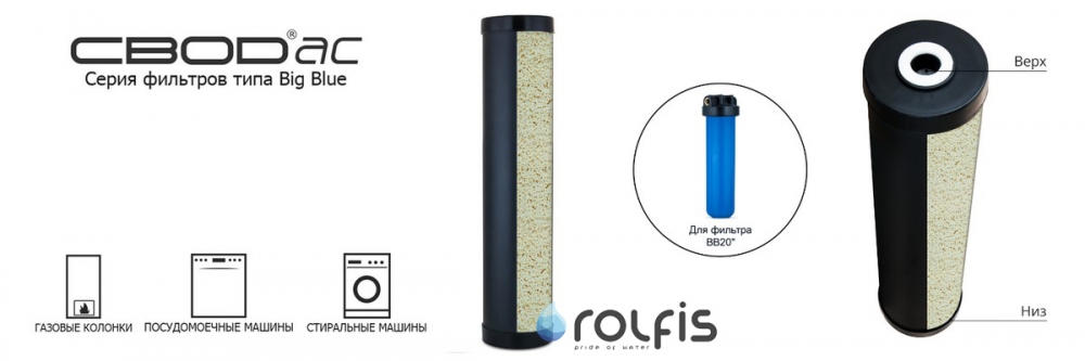 • Картриджи серии СВОД АС (S250, S400) - картридж для защиты теплотехники и бытовых приборов (стиральные и посудомоечные машины) от солевых отложений, вызываемых очень жесткой водой, при нагреве которой образуются сложно растворимые отложения на рабочих узлах агрегатов.