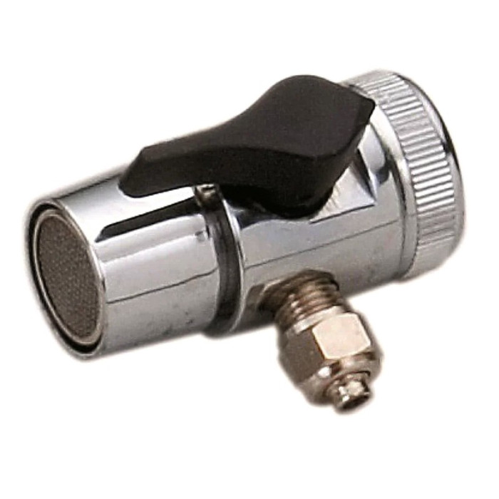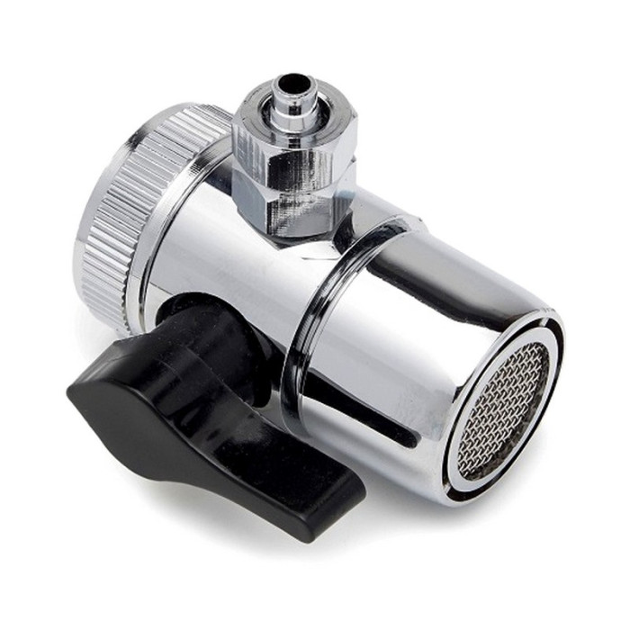 Дивертор устанавливается непосредственно на смеситель, переключение воды происходит с помощью черной ручки. Подключение: 1/4" (под стандартный шланг 1/4", который используется в питьевых фильтрах многих производителей).
