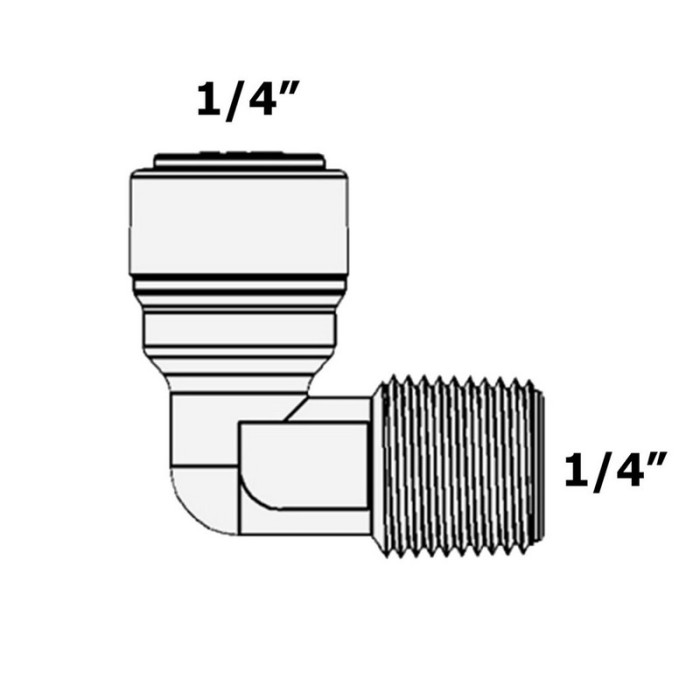 Фитинг-колено ITiger 1817-А 1/4НРx1/4Т - угловой фитинг для подключения фильтр, резьба наружная 1/4" - трубка 1/4".