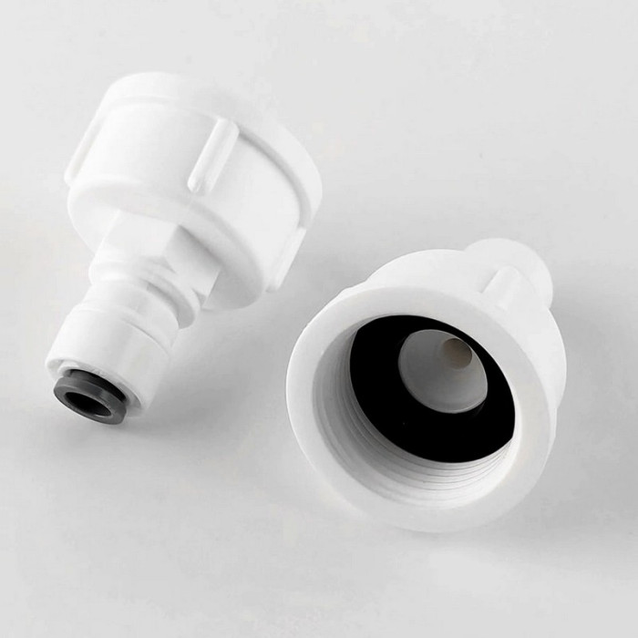 Фитинг прямой ITiger 1809-D (Резьба 3/4"- Трубка 1/4") - пластиковая муфта с резьбой 3/4" (внутренняя) и с отводом под трубку 1/4" (quick connect). Фитинги используются для соединения фильтроэлементов при комплектации систем очистки воды. Оснащены двумя уплотнительными резиновыми кольцами, являющимися дополнительной защитой от протечки.
